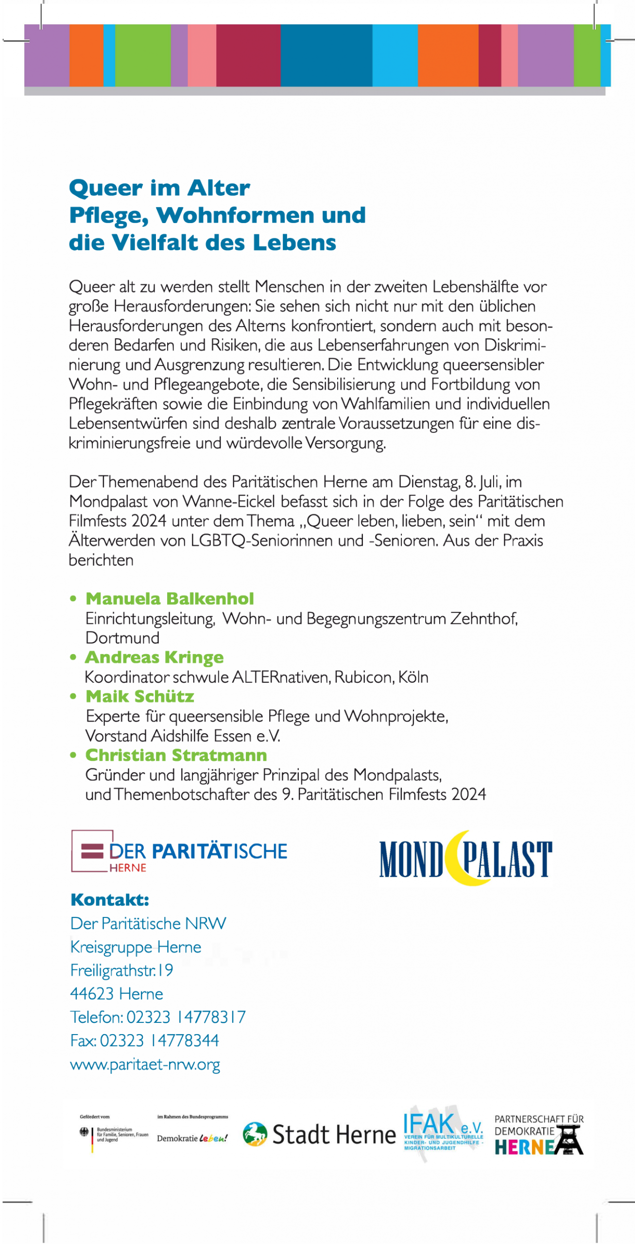 Queer im Alter-Pflege, Wohnformen und die Vielfalt des Lebens